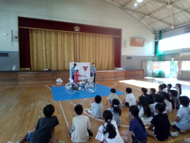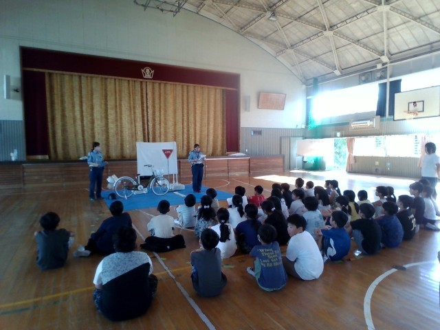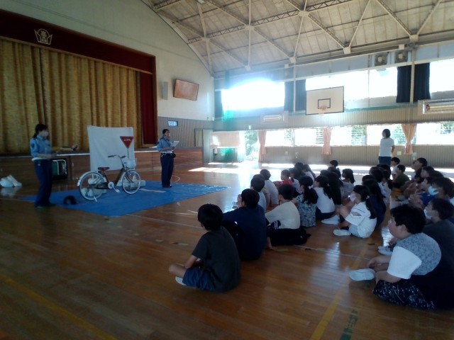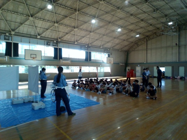 自転車の走るところ ヘルメットの被り方 交差点での注意事項を学びました。