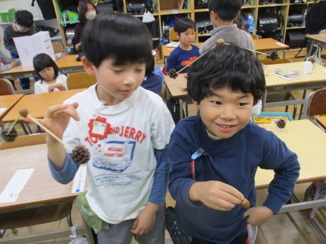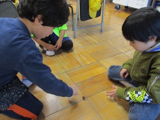 コマ回しをしたり、どんぐり迷路をしたりして、みんなで楽しく過ごすことができました。