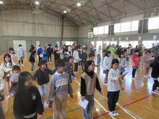 PTA役員さんの力をお借りして、体育館で合唱を行いました。ピアノの先生を講師としてお招きして、みんなで声を出して楽しく歌って踊って有意義な時間を過ごしました。6年生の子が立候補してくれて、ピアノ伴奏を務めてくれました。いろいろな方にご協力いただきありがとうございました。