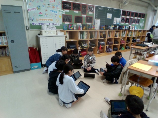 野外学習で行うスタンツについて、グループで考えています。いろいろなアイデアがでています。