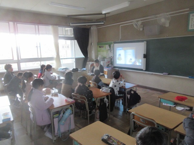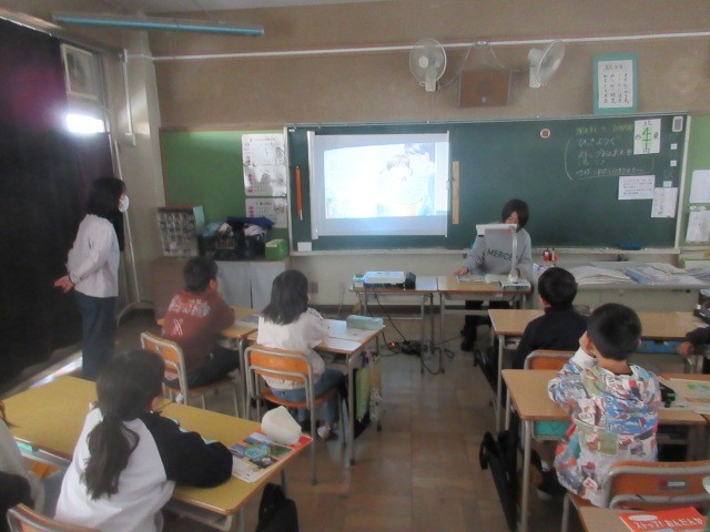読み聞かせボランティアのお母さん方に来ていただき、本の読み聞かせをしていただきました。読んでいただいた本は、「大ピンチ図鑑」や「ともだちがほしかったおばけ」などです。今回もお忙しいところ、読み聞かせをしていただきありがとうございました。