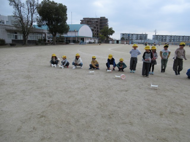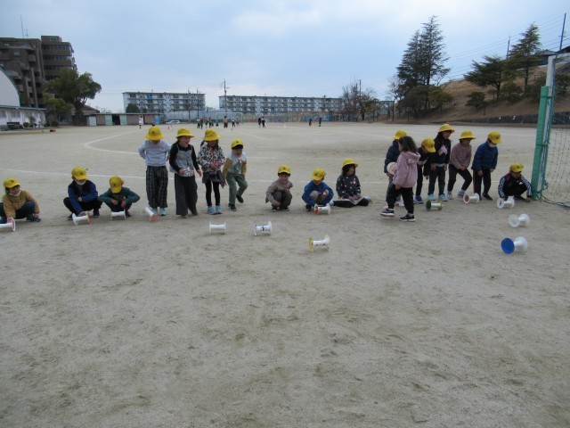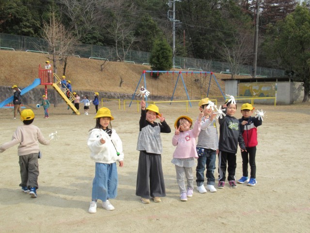 風車と紙皿コロコロを作って、冬の外遊びをしました。