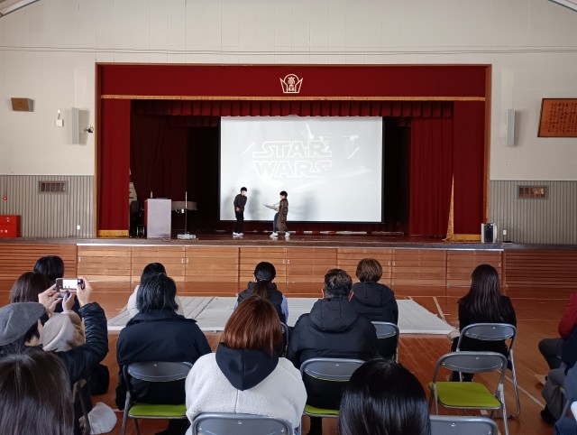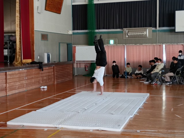 0212 3学期授業参観 5・6年生 公開日 2026/02/12 更新日 2026/02/12 学校の様子 6年生は、修学旅行や6年間の学習をスライドにまとめて体育館で発表しました。マットで大技を披露したり、自作の剣を使った演舞で活躍したりした子もいて、発表は盛り上がりました。5年生は、今日の発表に向けて考えてきたスピーチを小グループに分かれて伝えました。 +2