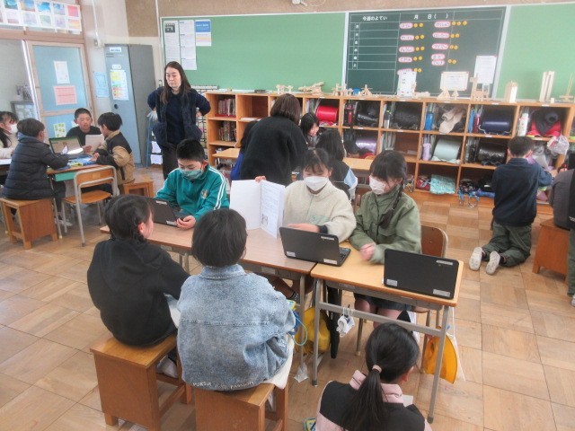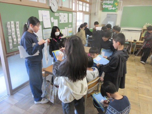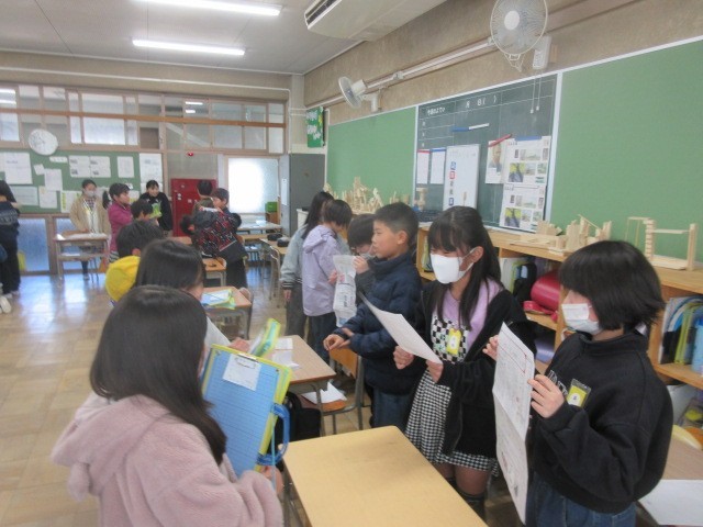 3・4時間目に、総合的な学習の時間で学習をしてきた福祉をテーマにした発表会を行いました。ユニバーサルデザインや点字、車椅子、音響式信号機など、社会一般に整備されてきた物の意義や由来などについて調べてまとめました。3年生を招いて聞き手役になってもらうと当時に、発表を通じて学んでもらいました。4年生はそれぞれに工夫を凝らした発表で、内容も大変専門的で驚きました。また、3年生は熱心にメモを取るとともに、発表を聞いた4年生にお礼の手紙を手渡しました。