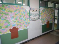 校内のあちらこちらに、各学年の作品が掲出されています。どの作品もよく仕上がっています♪後日あります授業参観の際には、ぜひご鑑賞ください。