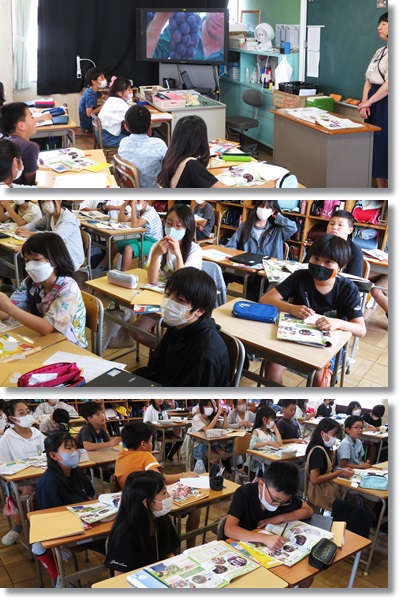 各単元の最後には、『Over the Horizon』という学びが設定されています。単元ごとに、「世界の名前を考えよう」「世界の一年を考えよう」などを学習します。今回は「授業について考えよう」の学習でした。
