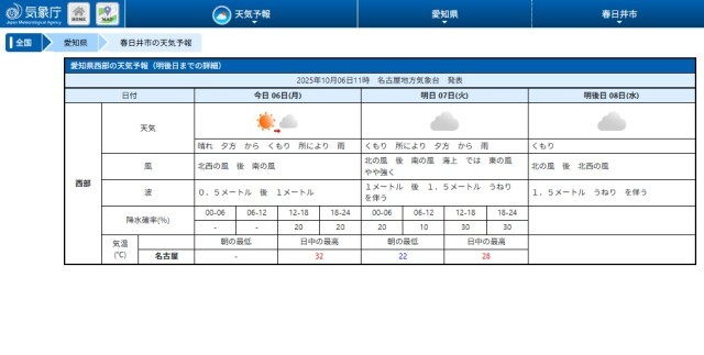 気象庁HP(春日井市の天気予報)