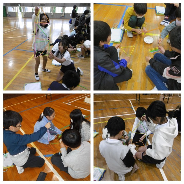 筋交いを入れることで、部材を三角形にすることができ(トラス構造)、強度を増すことができるということを、子どもたちは体験を通じて知ることができました。