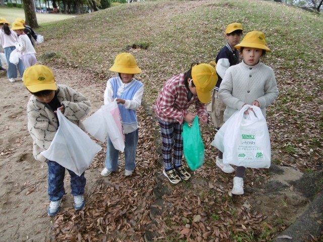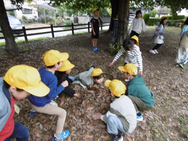 秋見つけで、どんぐりや落ち葉をたくさん拾いました。大きなどんぐりや、帽子付きのどんぐり、赤や黄色の落ち葉などを見つけて、秋を存分に感じることができました。