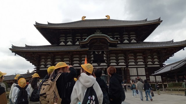 6年生の修学旅行ですが、東大寺に到着です。迫力ある建物の数々に、感嘆しています♪