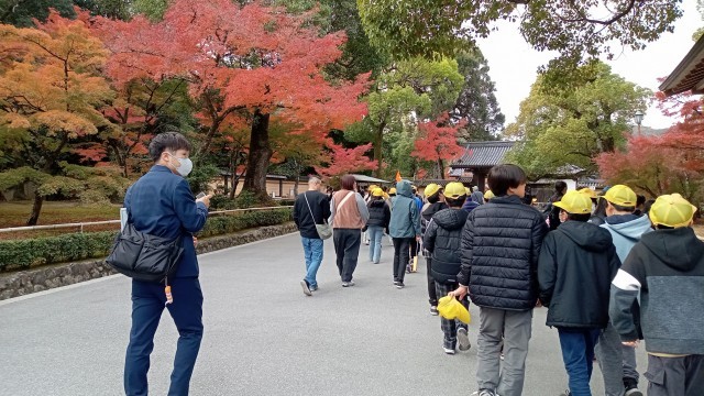 本当は金閣を写した画像を紹介したいのですが、あまりに人が多く、活動班ごとの写真撮影もかなりたいへんな状況でしたので、、、紅葉が美しい鹿苑寺の様子を紹介します。