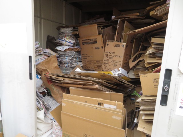 先日、リサイクル倉庫が満杯になりましたので、業者に今年度3回目の回収をしていただきました。