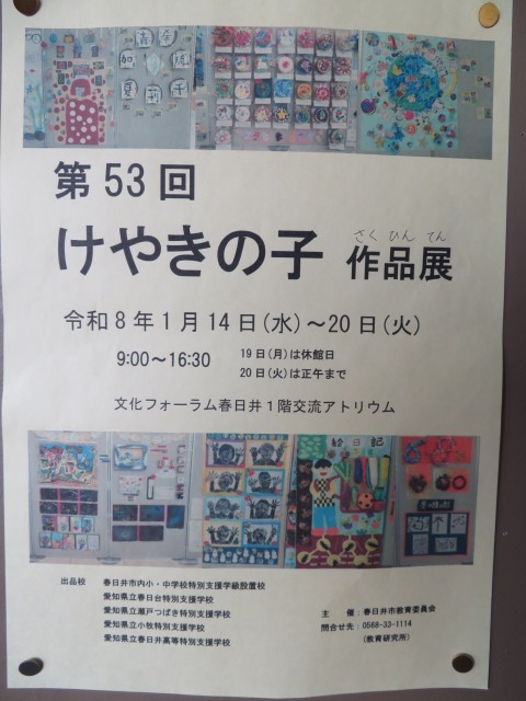 今日(14日)から今月20日(火)まで、春日井市図書館がある「文化フォーラム春日井」の1階・交流アトリウムにて「第53回けやきの子作品展」が開催されています。