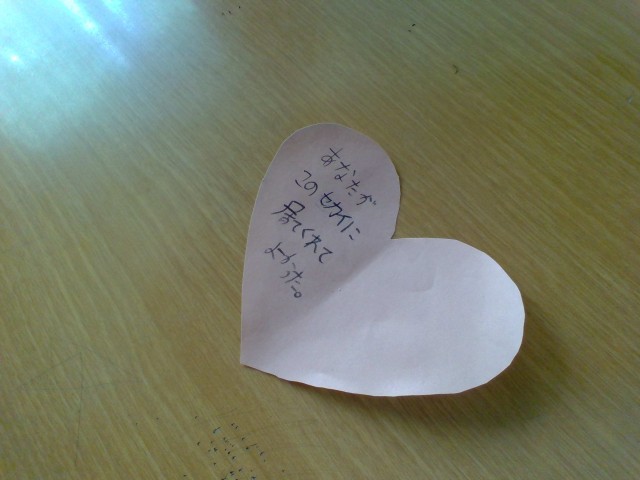 身体測定のあと、保健指導がありました。最後のお話は、「ふわふわ言葉とちくちく言葉」でした。どんな言葉があてはまるのか考え、ふわふわ言葉をハートの紙に書きました。卒業まであと2ヶ月。ふわふわ言葉があふれるクラスで卒業したいね。