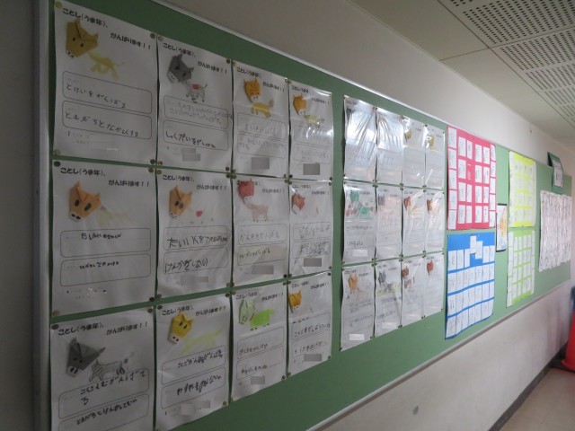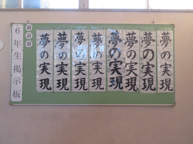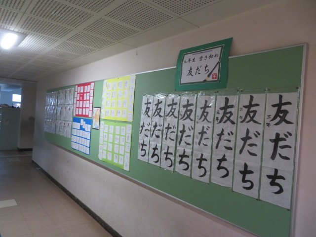 校内のあちらこちらに、各学年の作品が掲出されています。