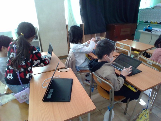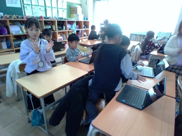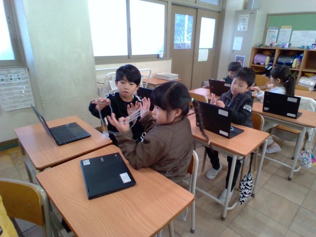 休み時間にも友達と一緒にあやとりをしている子もいます。