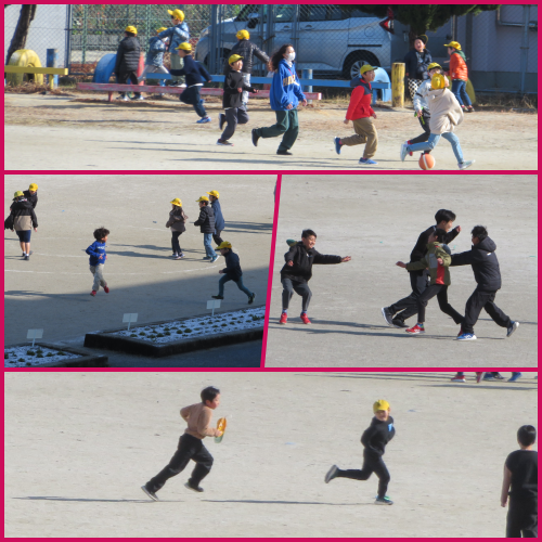 画像は今日の午前中の、柏原っ子たちの様子です。寒波の影響でずっと寒い日が続いていますが、寒さを吹き飛ばすように、元気よく運動場を走ったりボール遊びをしたりする子の姿が目立ちました。昨夜降った雪が、花壇の上にうっすらとですが残っているので、見た目の寒さも加わりそうですが、柏原っ子たちはへっちゃらな感じで遊んでいました♪