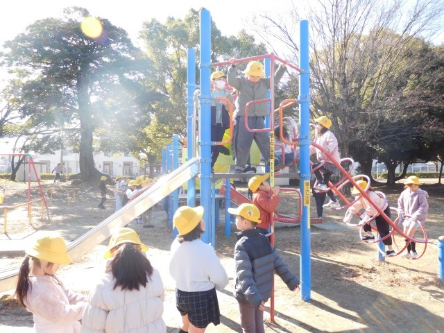 また、天王公園と柏原公園では「冬みつけ」も行いました。木々の様子や空気の冷たさなど、五感を使って冬の訪れを感じ取っている姿が印象的でした。寒さに負けず、最後まで一生懸命歩ききった子どもたちの成長を感じる一日となりました。