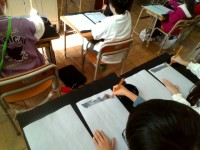 2年生の書の時間では、1年生に引き続き、水習字で運筆を学びます。本日は「むし」と...