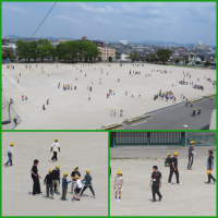 絶好の青空の下、6学年そろって遊んでいる今日(17日)の昼放課の様子です。運動場...