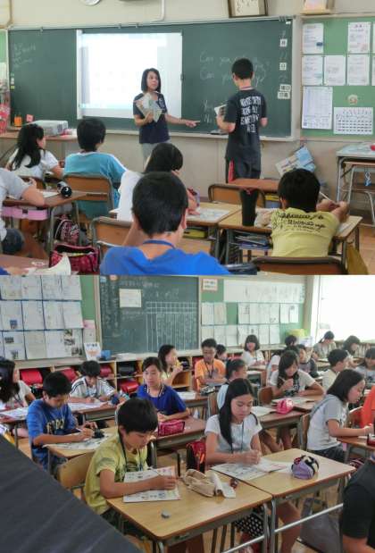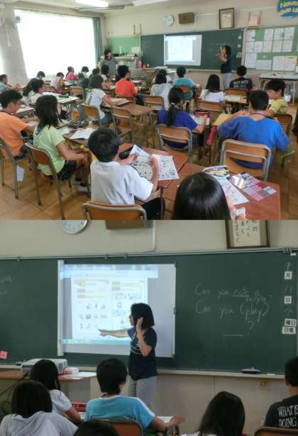 9月11日(水)、6年生の外国語活動のようすです。今日は、「Can you 〜 ?(〜ができますか)」の学習をしました。「Can I play baseball ?」と質問されたら、「Yes, I can.」「No, I can't」と答える練習をしました。