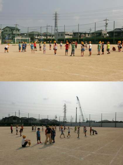 4年生は、算数 『面積』 の学習で、運動場に1辺が10mの正方形をみんなでつくり、「a(アール)」と「平方メートル」の関わりを調べていました。