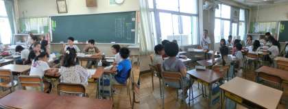 9月19日(木)、2学期最初の代表委員会のようすです。今日は、学級委員は学年ごとに、委員会の委員長は一つのグループになり、大手小学校をよりよくする手だて考えました。今の大手小の良いところと直したいところを出し合い、代表委員会でまとめていました。