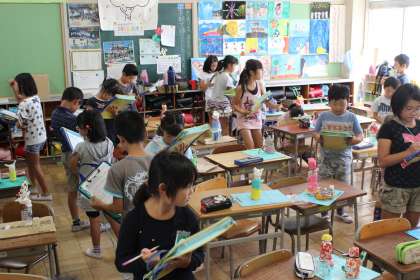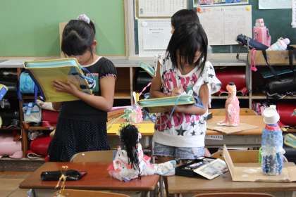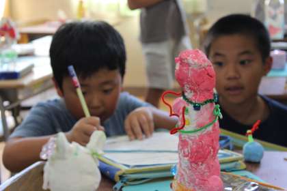 3年生 図工鑑賞のようす 公開日 2013/09/26 更新日 2013/09/26 3年生 9月26日(木) 3年生の図工授業のようすです。ガラスに粘土を貼って楽しい人をつくりました。この写真は、友達の作品を鑑賞しているところです。角度を変えながら作品の良いところを探していました。