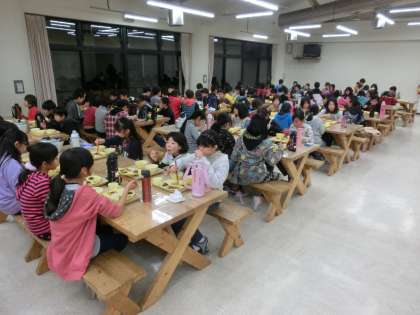 今夜の夕食は、食堂で食べました。準備も上手になってきました。たくさんの子が、おかわりをしていました。