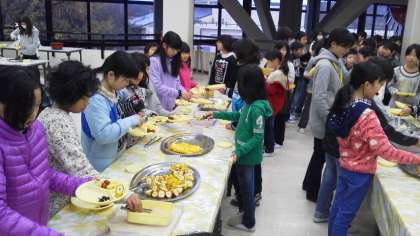 朝食のようすです。最後のバイキングになります。たくさんの子どもが、おかわりをしていました。