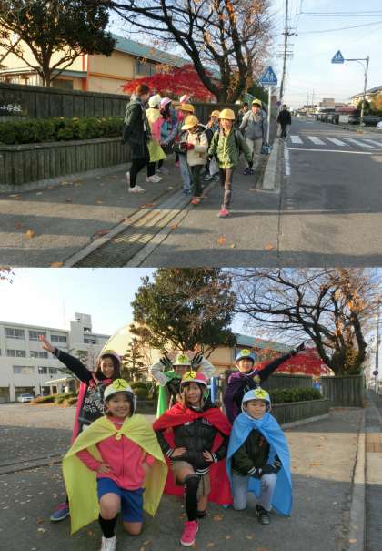 あいさつ運動、大手っ子レンジャーががんばっています。