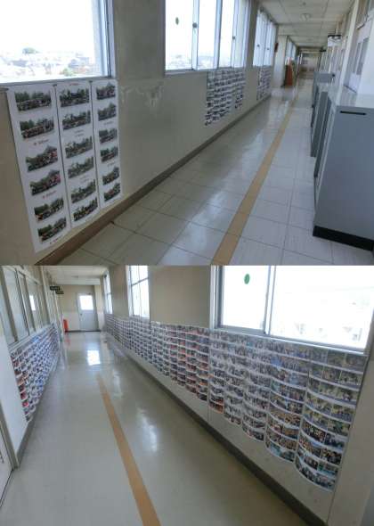 5年生の野外学習と6年生の修学旅行の集合写真とスナップ写真を掲示しています。野外学習の写真は2棟(南側)4階、修学旅行の写真は1棟(北側)4階に、それぞれ掲示しました。個人懇談会においでの際は、是非ご覧ください。注文方法については、学級担任よりお伝えしています。よろしくお願いします。