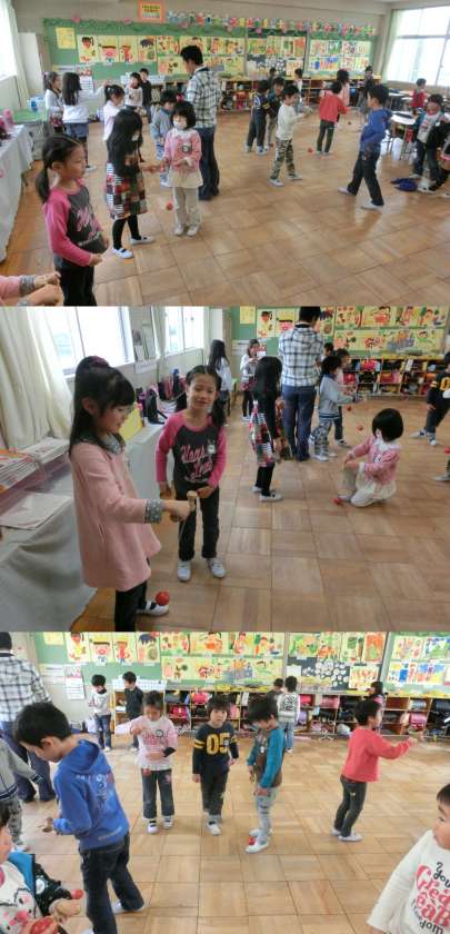 12月11日(木)、1年生が「けんだま」を使って遊んでいました。なんとか皿の上に玉をのせようと、一生懸命取り組んでいました。