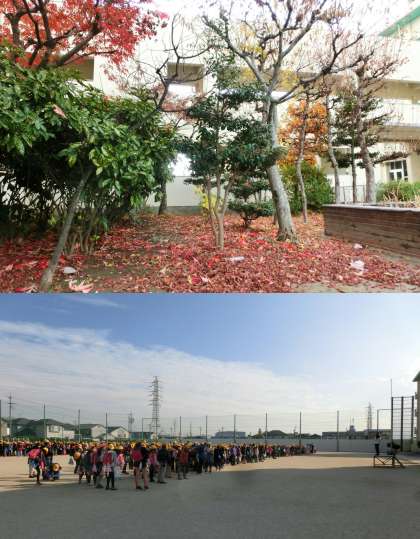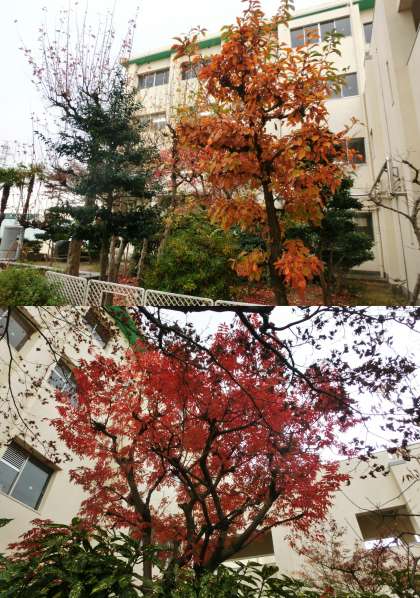 12月11日(水)、校内の木々のようすです。今日の名古屋地方気象台の最高気温は、午後1時半頃に11.7度を記録し、少しずつ寒くなってきています。校内の色づいた木々も、徐々に葉を落としています。