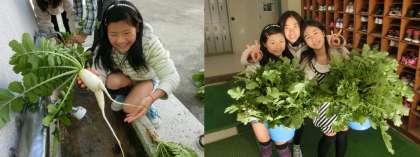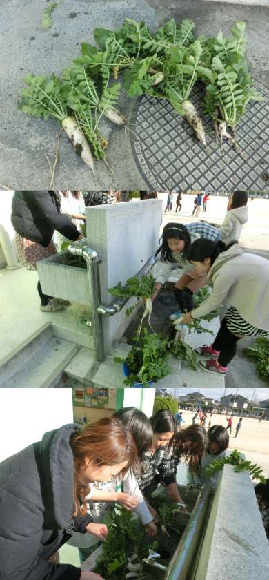 12月12日(木)、6年生が、学年園で育てていた大根を収穫しました。少し小さいですが、形のよい大根がたくさんできました。これから、この大根を使って調理実習を行う予定です。