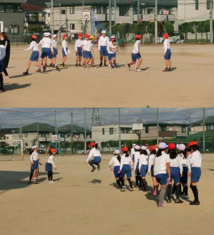 12月13日(金)、2・4・6年生の体育授業のようすです。気温の亜柄医一日でしたが、2年生は、男女いっしょに元気よくドッジボールをしていました。4・6年生は、1月の児童集会で行う「クラス対抗大なわとび」に向けて練習をしていました。