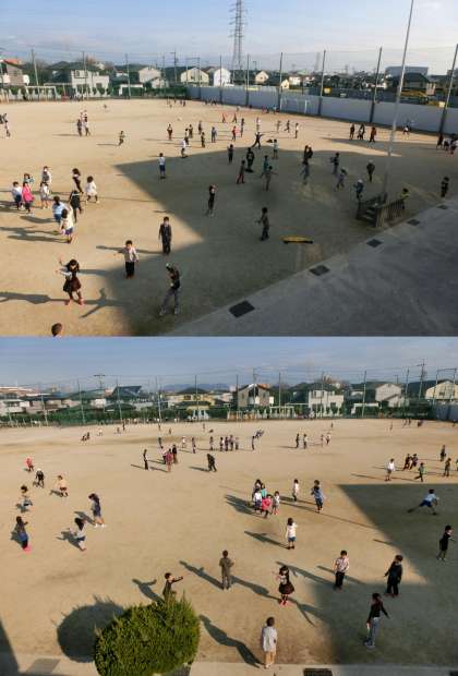 12月13日(金)、昼放課の運動場のようすです。朝から気温が上がらない一日で、名古屋地方気象台の最高気温も9.6度でした。子どもたちは寒さに負けず、外で元気よく遊んでいます。