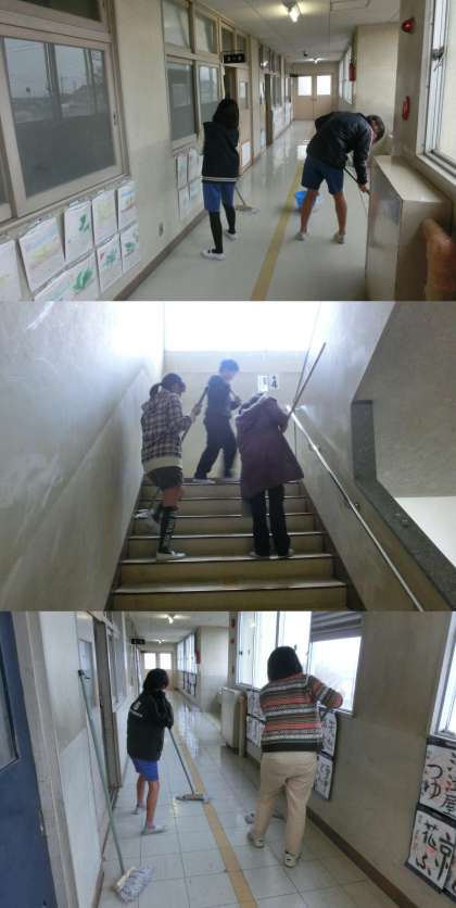 12月18日(水)、授業後に廊下と階段のワックスがけをしました。先生といっしょに、5・6年生の美化委員が掃き掃除とワックスがけを手際よく行ってくれました。冷たい中でしたが、モップ洗いもしっかりとできました。気持ちよく、新年が迎えられます。美化委員会のみなさん、ありがとうございました。