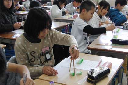 1月9日(木)、学活の時間に4年生が「箸の使い方」を学習しました。