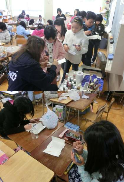 1月9日(木)、3学期最初のクラブ活動のようすです。気温が上がらすとても寒い日でしたが、運動場では、たくさんのクラブが元気よく活動をしていました。写真は、運動場とトールペイントクラブのようすです。