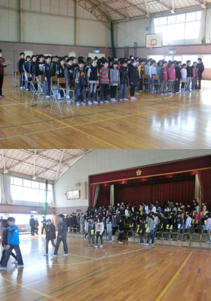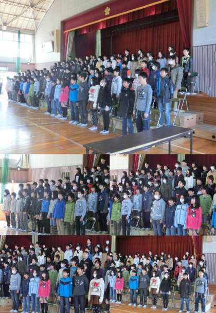 3月14日 卒業式予行練習 公開日 2014/03/14 更新日 2014/03/14 児童のようす 3月14日(金)、卒業式に向けて、2回目の予行練習を行いました。式次第にそって入場から退場まで行い、証書授与と呼びかけは、すべて本番と同じようにしました。6年生の練習に取り組むようすからは、いよいよ卒業が近づいているという気持ちが伝わってきました。5年生からは、在校生の代表として卒業式に参加するという自覚がとても感じられました。