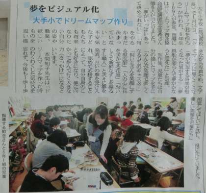 6年生 『ドリームマップ』が紹介されていました。 公開日 2014/03/15 更新日 2014/03/15 6年生 2月末の「中日新聞くらしのニュース」に、6年生が取り組んだドリームマップ作りが紹介されていました。