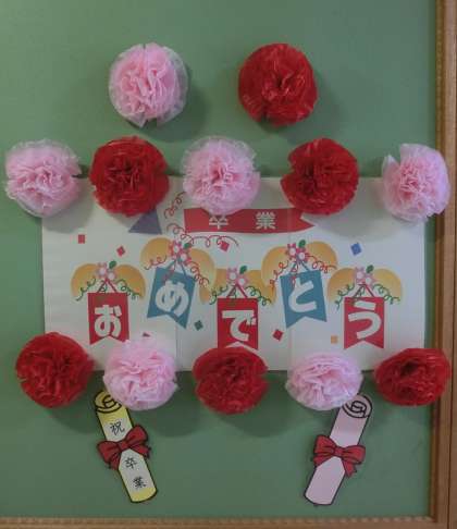 栄養士さんが、6年生に向けて卒業を祝うメッセージを作られました。職員室横の掲示板に張りだされています。
