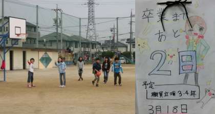 3月18日 6年生、『ラスト2』 公開日 2014/03/18 更新日 2014/03/18 6年生 3月17日(火)、卒業式まであと「2日」。6年生が、朝放課から運動場で元気よく遊んでいました。卒業式練習も、仕上げの段階になっています。