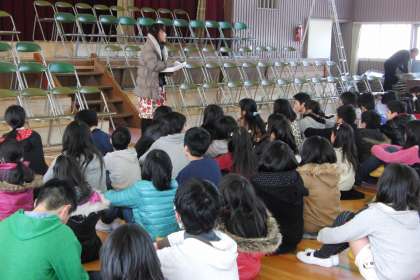 はじめに現在の班の様子を振り返りました。次に担当の先生から班長・副班長としての心構えのお話を聞きました。「みんながするべきことをきちんとできること、これができるとみんなからの信頼も得られます。みんなから信頼されれば、みんなは班長さんの言うことを聞きます。聞いてもらえれば、安全に登下校できるようになります。」初めて班長や副班長になる人たちは特に真剣に聞いていました。