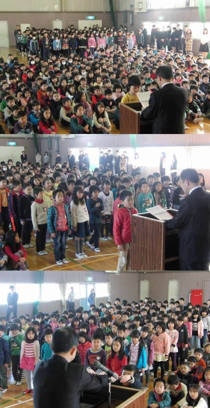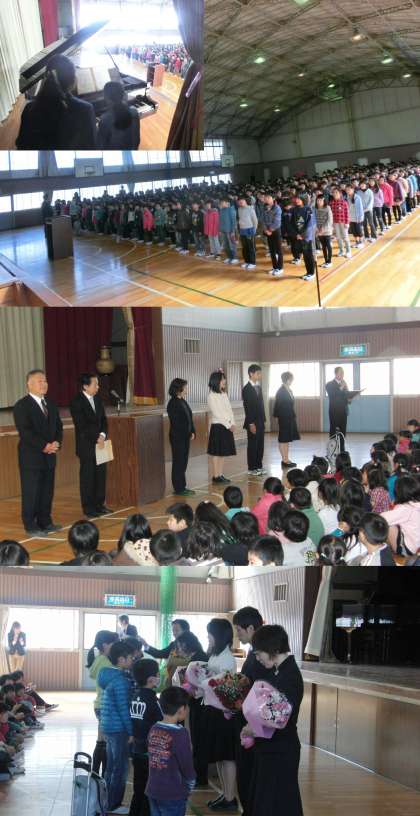 修了式が終わり、生活指導の先生からは、春休みを落ち着いて過ごすようにと話がありました。その後、この3月で大手小学校から新しい学校に行かれる先生方の中で、4月14日の離任式におみえにならない先生からあいさつをいただきました。ありがとうございました。