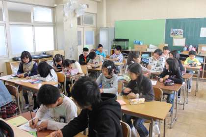 4月5日(木) 5年生は学級の係を決めました。この写真は係が集まって「係宣言」を書いているようすです。どんな係にしたいか、具体的な目標を書いていました。学級のためにがんばってください。