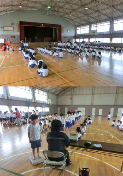 4月11日(金)、全学年で身体測定を行い、身長・体重・座高を測りました。1年生は、小学校で初めての身体測定でした。2〜6年生のみなさん、この1年間でどれくらい成長したでしょうか。