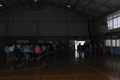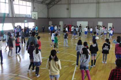 後半の時間は、前半の静かさとは打って変わって、学級対抗のドッジボールで盛り上がりました。「担任の先生が当たったら負け」というルールだったので、担任の先生を囲むように守る子や、積極的に前に出てボールをとって相手チームを果敢に攻める子などそれぞれ自分の持ち味を出して楽しみました。
