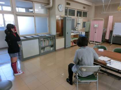 4月14日(月)、今日から視力検査が始まりました。写真は、6年生の視力検査のようすです。どの学年も、再検査を後日行います。再検査が終了した学年から、検査結果をご家庭にお知らせする予定です。